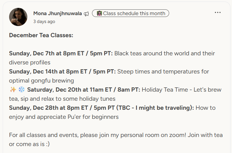 - Private discussion board - Ask questions, post daily tea musings, and get to know others in the group.